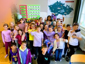 Žákovský parlament se rozhodl, že do této akce se letos zapojí i naše škola. Zástupci parlamentu vše vysvětlili spolužákům ve svých třídách a hlásili týden dopředu všechny informace i školním rozhlasem. K aktivitě si připojil i první stupeň, a proto jsme mohli ve čtvrtek 27. března potkávat ve škole spoustu fialově oblečených žáků i zaměstnanců školy.