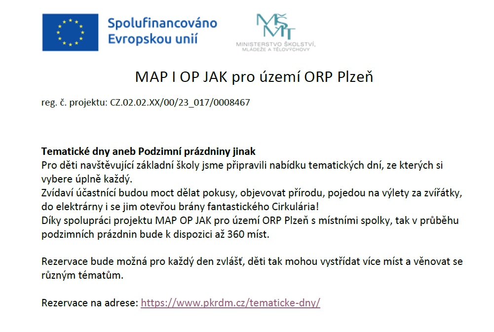 Tématické dny aneb Podzimní prázdniny jinak