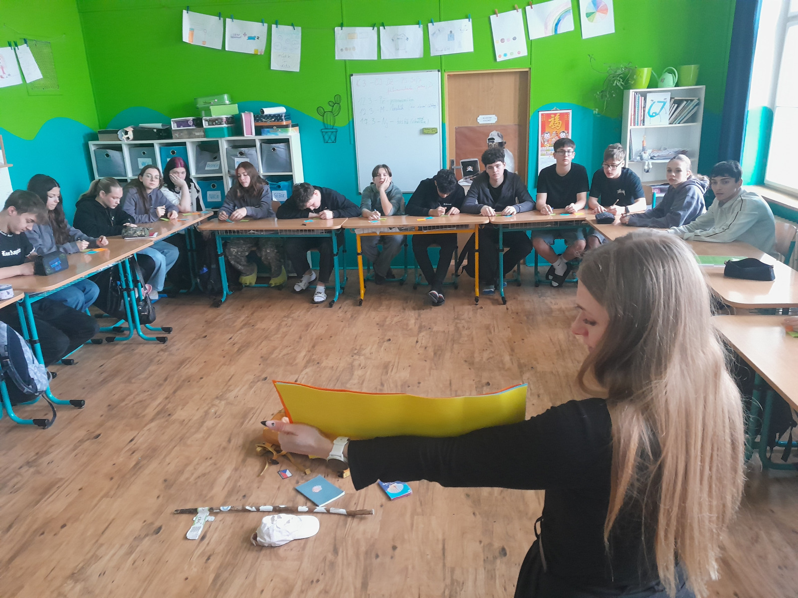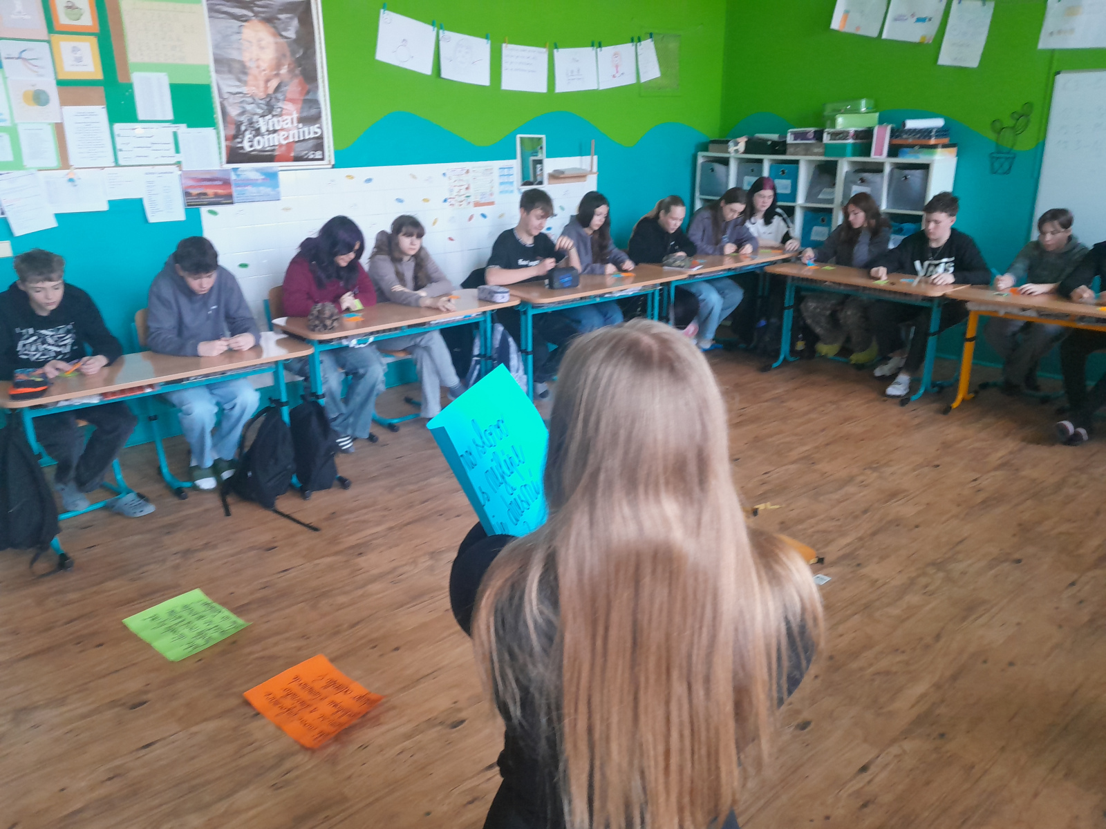 V středu 11.3.2026 nám do 9.B přijela povyprávět poutnice Verča z Trutnova o svých cestách do Santiaga de Compostela (a dál). Bavili jsme se o rozdílech mezi cestováním a putováním, o důvodech, proč chce jít člověk tisíce kilometrů pěšky, co si s sebou musí na cestu vzít, co mu pouť přinese a co cestou může zažít. Žáci se dozvěděli i o těch náročnějších chvílích na pouti. Zjistili, že mohou putovat i po Čechách a mnohadenní pěší chůze může být pro někoho velká výzva. Viděli, že člověk může putovat v jakékoliv části roku a že na cestě se dají slavit i Vánoce a příchod nového roku. Žáci se aktivně zapojovali do různých aktivit, sledovali spoustu fotek a videí z cest a na konci provedli krátkou reflexi našeho dvouhodinového workshopu. Podle jejich závěrečných dotazů lze vyvozovat, že je workshop zaujal a téma poutnictví zaujal víc, než jsem původně předpokládal.